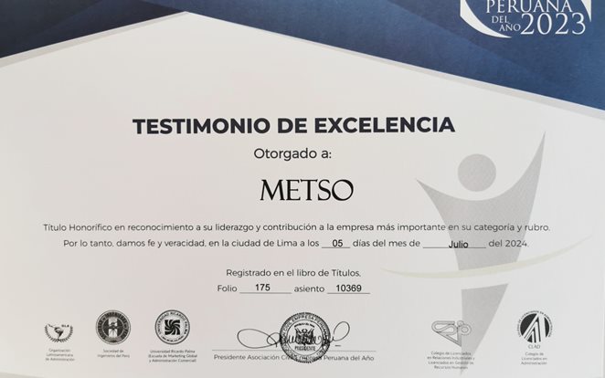 Metso distinguida en ”Premios Empresa Peruana del Año 2023”