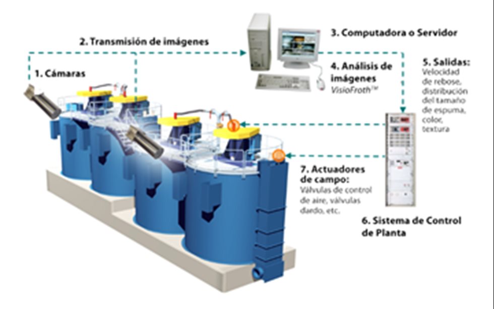 Estas mediciones son transferidas al sistema de control de planta, las cuales son evaluadas para que se realicen las acciones correctivas que permitan que cada celda extraiga la espuma de manera eficiente al ajustar el nivel de las celdas y el flujo de aire de alimentación, generando un incremento en el mineral flotante y una mayor recuperación de espuma.