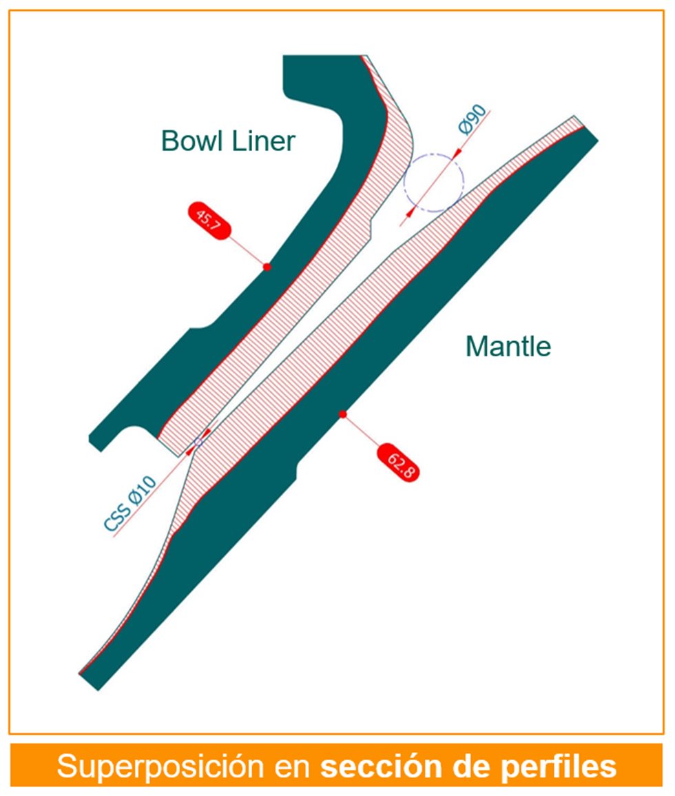 Para el desarrollo y optimización de perfiles es necesario contar con data mecánica del equipo y data metalúrgica del mineral con las condiciones actuales de operación, así como también la medición de los perfiles de desgaste del mantle y bowl liner cuando hayan alcanzado el fin de su vida útil.