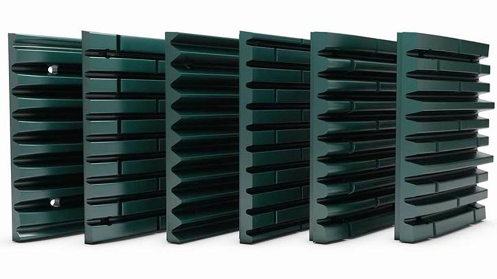 Placa de mordaza fija - Utilizar hasta que el desgaste sea alrededor del 50% en la zona inferior. Luego, realizar nuevamente el proceso cuando el desgaste sea del 90% o 100% n esta nueva área inferior. Concluir con el 50% restante del ciclo de vida de esta extremidad.