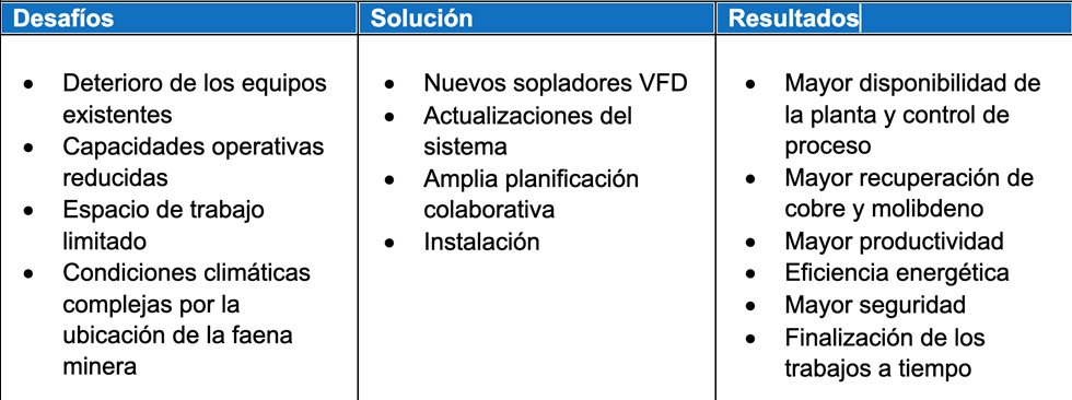 Estos avances fueron posibles luego de una intervención clave en los tres sopladores fijos del circuito de flotación, que presentaban un alto grado de deterioro. Con un espacio de trabajo limitado y equipos que afectaban directamente las tasas de recuperación, se llevó a cabo un proceso de revisión y renovación durante 62 días, liderado por Metso.