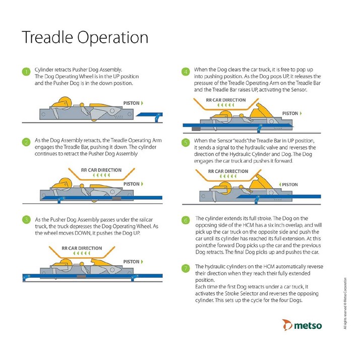 El pedal se utiliza para ajustar la carrera del indexador para que coincida con las diferentes longitudes de los vagones.