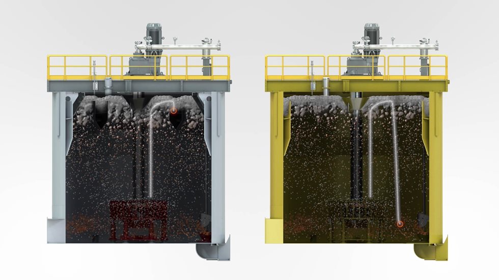 La batea central de Metso Outotec ajusta el área de espuma resultante en cada celda, lo que resulta en una mayor recuperación de espuma, una mayor extracción de masa concentrada y una mayor recuperación en todo el circuito. Las celdas recuperan material más valioso reduciendo la pérdida a través de los relaves.