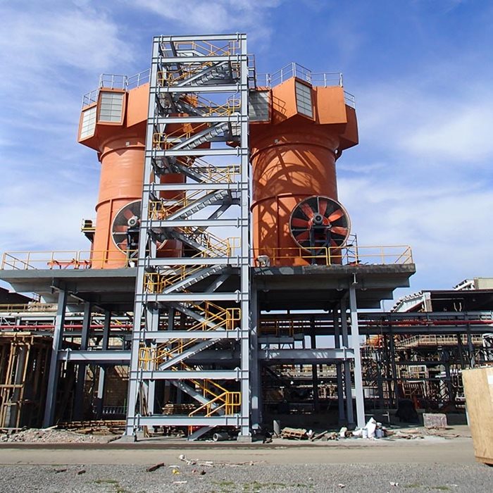 Las torres de enfriamiento de Metso brindan una solución eficiente para aplicaciones peligrosas que no pueden enfriarse de manera factible con agua. Estos incluyen materiales de enfriamiento con altas cantidades de ácido sulfúrico (> 160 g/l), cloruro, fluoruro y sólidos precipitantes, como yeso. La solución se alimenta desde la parte superior de la torre a través de boquillas presurizadas, con el aire de enfriamiento fluyendo hacia arriba en contracorriente a la solución. El flujo de aire es generado por un ventilador ubicado en la sección inferior de la torre. La solución enfriada se recoge del fondo de la torre y se alimenta a la siguiente fase del proceso a través de tuberías o mediante una batea.
