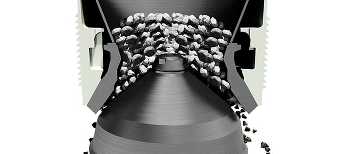 The answer is the Metso XT720 alloy with increased manganese (~21%) and chrome. It’s a tailored alloy with up to 10% longer lifetime than the standard XT710 alloy for HP cones, so its cost-to-lifetime ratio is excellent. In this regard, I really feel like the HP cone crusher and XT720 alloy combination hits the sweet spot in most applications.