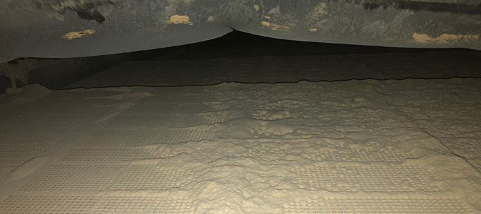 When inspecting a screening process, the suggested improvements are always dependent on the customer specific processing conditions and exact application. Sometimes the solution is more complex than at other times. In the image below, taken at a customer site, the problem and solution were obvious to us. As the screening media apertures were located just above the cross beams, stones were easily getting stuck. The pegged stones resulted in unnecessary wear on the screen. By removing the troublesome apertures, a blank surface was created, thereby protecting the screen.