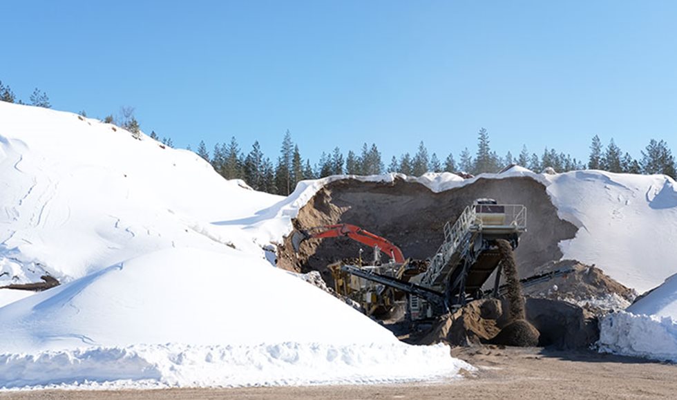 The temperature of -20°C and the icy wind in the morning did not deter the morning shift of LL Company when they started the double-stage plant consisting of the Lokotrack LT110 and Lokotrack LT220D in March at Suovanlahti in Viitasaari.