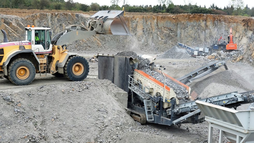 The more than 120-meter-deep old quarry has now been closed, and rock material is being removed from the new 70–90 meter section. The production runs four days a week, from six in the morning to five in the afternoon, and during this period, 2,000–2,500 metric tons of crushed stone passes through the ST2.8 screen.