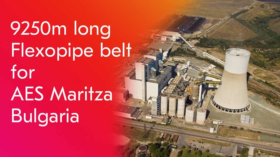At the end of September 2020, Metso Outotec crew successfully completed a month-long installation of a 9250m Metso Outotec conveyor belt in the pipe conveyor of AES Maritza. The delivered FLEXOPIPE conveyor belt is a 1500 ST1500 XP. With a belt width of 1500mm, the closed pipe belt with overlapped edges creates a diameter of 400mm, runs at a speed of 4.8m/sec and has a capacity of 1.400 tons/hour.