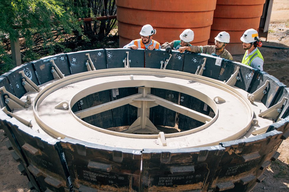 EroBrasil Caraíba, a copper mine and processing plant complex in the backlands of Bahia, Pilar district in the municipality of Jaguarari, Brazil, has optimized its annual primary crusher maintenance stoppage in terms of time and safety processes. The mining company reduced the time to change the concave liners of the primary crusher equipment from 15 to 11 days. The process was achieved by adopting Metso's PG concave carousel device, a kind of "frame" that allows the pre-assembly of the trunnions outside the crusher. With this solution, it is possible to lift the concaves only once, reducing the operators' exposure to risks during assembly and making the change-out considerably faster.