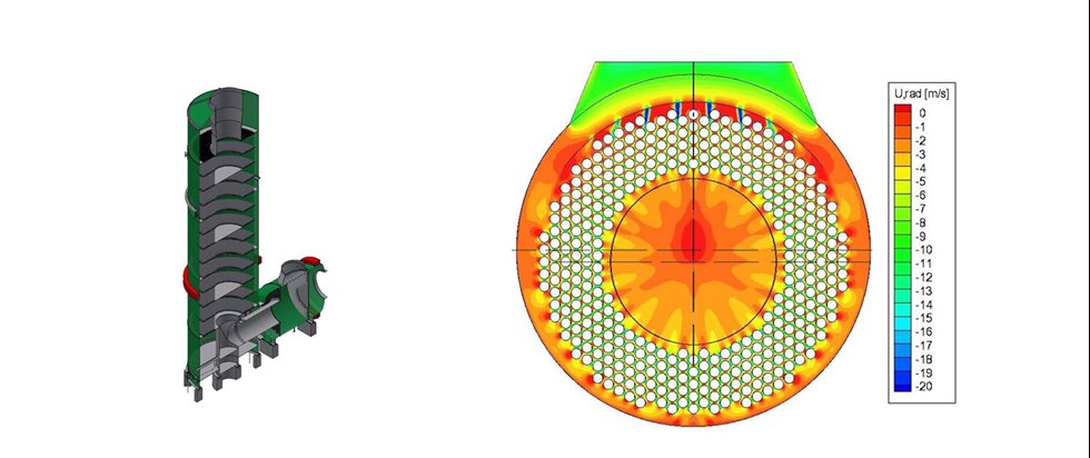 The foremost focus for improving our patented CORD heat exchanger was the reduction of life-cycle costs. We managed to achieve this by reducing the investment costs for the CORD by replacing the material used on the vertical section with inexpensive mild steel, using a smaller quantity of stainless steel for the horizontal section. This modification optimized the heat exchange split between the horizontal and the vertical section, and additionally extended the lifetime and service intervals reducing maintenance and operation costs.