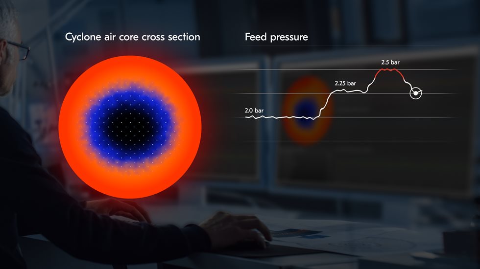 CycloneSenseTM visualizes the hydrocyclones air core through direct measurement and allows you to see the points where roping and other issues are experienced. The continuous and direct measurement provided by CycloneSenseTM enables an automatic cyclone control with real-time analysis. This information helps in finding the optimal operating point for hydrocyclones by controlling variables such as feed pressure, density, and the number of operating cyclones.