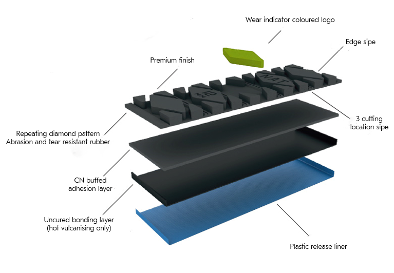 Material: Wear Rubber 65 ShoreA, Buffed Bonding Layer-CN