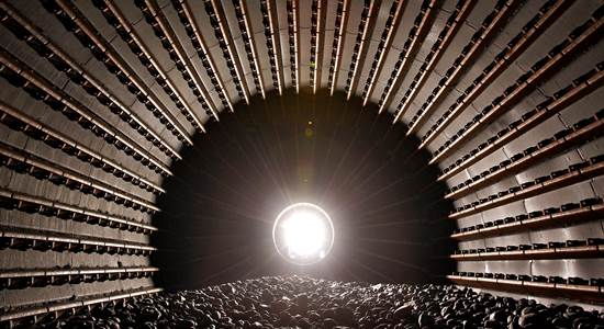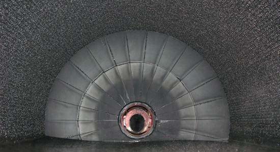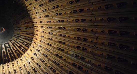 Megaliner attachment system, with minimum number of attachments points, also helps to speed up removal of used liners. Having the bolts attached from the outside of the mill means that they are well protected from dust and wear and therefore easier to remove. Old liners can easily be stripped out by the liner handler operator. A tool for taking out the first row is available. Thereafter, gravity is generally enough to remove the liners.