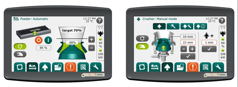 Our IC™ crusher automation allows you to maximize the performance of your high-quality Metso crushers. This is done with carefully defined safety parameters for oil temperature, power draw, and oil pressure, which are indicators of the actual crusher load. This crusher automation monitors the crusher condition and gives an early indication if there's a problem in the crusher. This can help solve a problem before it becomes serious and costly.
