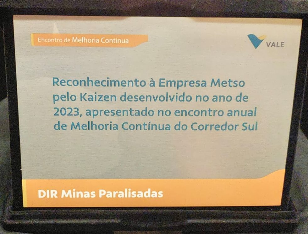 A Vale promove entre seus parceiros o Prêmio de desenvolvimento de Kaizen, um reconhecimento aos melhores projetos que apresentaram reduções significantes de custo em sua aplicação e melhorias no processo.