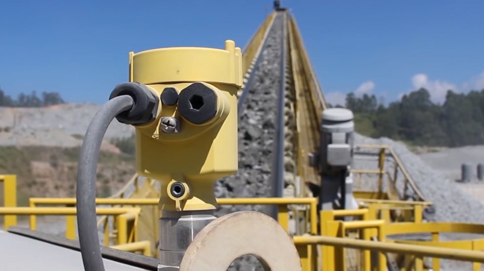 Após a primeira etapa de britagem, o material que segue pelas correias transportadoras ainda é supervisionado por outro sensor de nível, que avalia ocorrência de entupimento no chute do transportador e paralisa o processo automaticamente quando necessário.