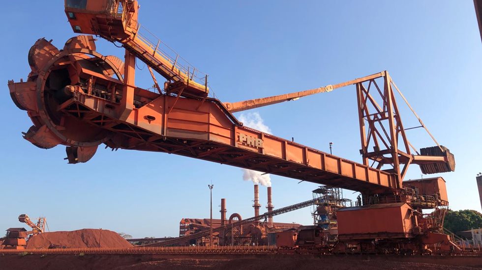 Equipamento estratégico, a recuperadora é parte da estrutura da MRN. Com mais de 20 anos de operação, a máquina é usada para levar a bauxita lavada para os secadores, etapa que antecede o carregamento dos navios. Em sua atividade, a recuperadora pode movimentar até 1600 toneladas de minério por hora.
