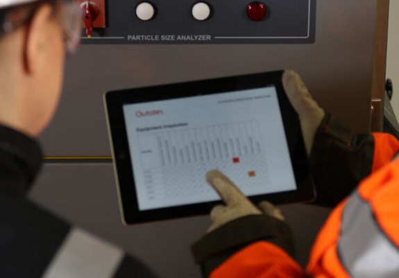 Os técnicos da Metso usam um aplicativo móvel baseado em nuvem para agilizar o processo de inspeção e geração de relatórios. Isso significa que você obtém os resultados mais rapidamente e em um formato claro e acessível, fácil de compartilhar com os colegas. O aplicativo orienta os técnicos no processo de inspeção e ainda permite que eles capturem imagens térmicas para apoiar a tomada de decisões mais precisas.