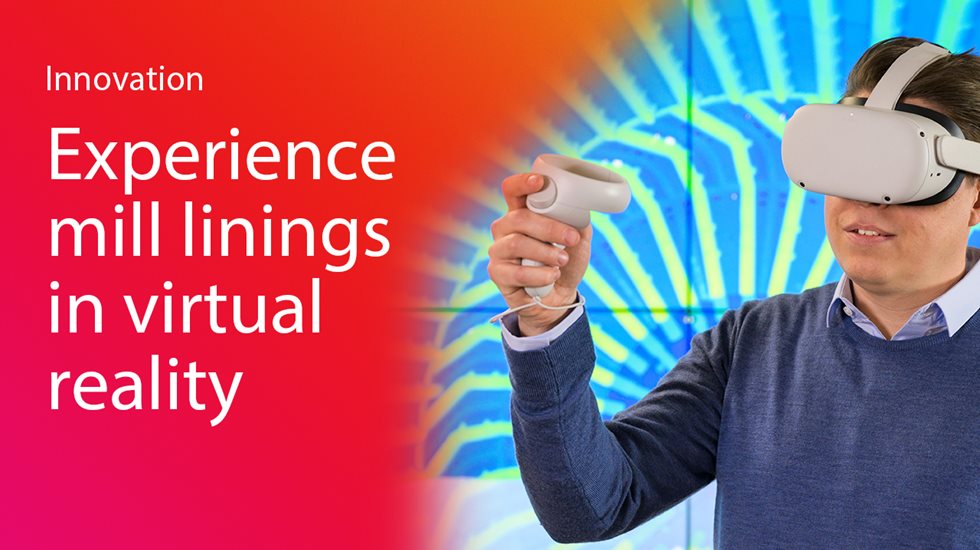 - Os usuários entram em um ambiente de 360° onde podem se mover livremente em um cenário virtual 3D e interagir com a varredura do revestimento de moinho para analisá-lo.